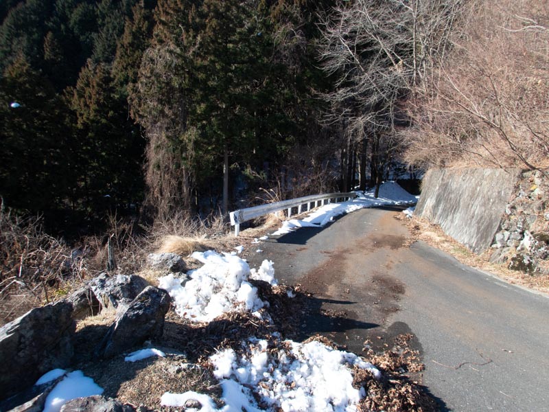 野末張見晴台から道路を歩いて谷底に下りていく。