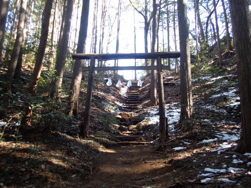 高山不動に到着。ここで関八州見晴台へ向かうルート迷った。建物を正面に見た時左側に行くとルートがある。右側の方が道っぽいのがあるので釣られないように。
