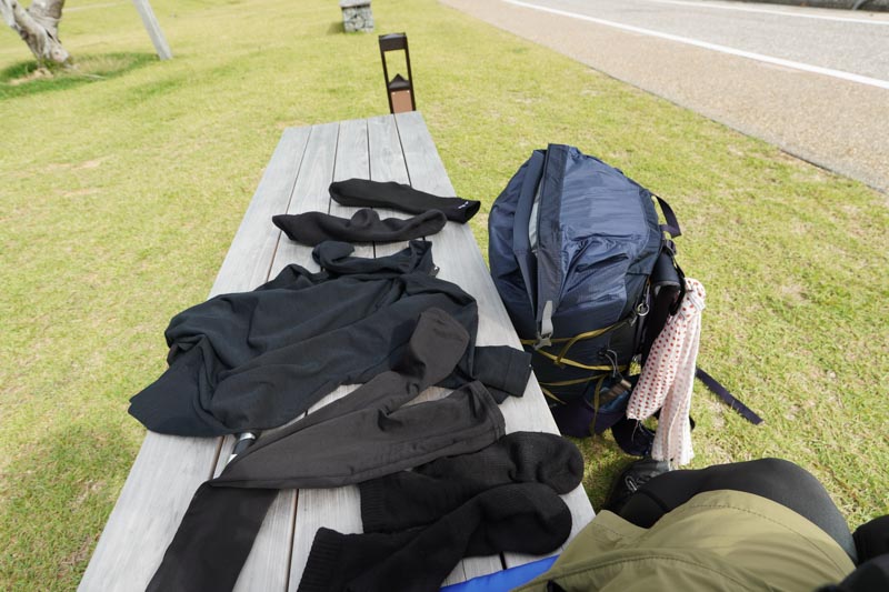 大浜海岸に到着。天気もいいので少し洗濯物を乾かす。ここは観光客が多い。