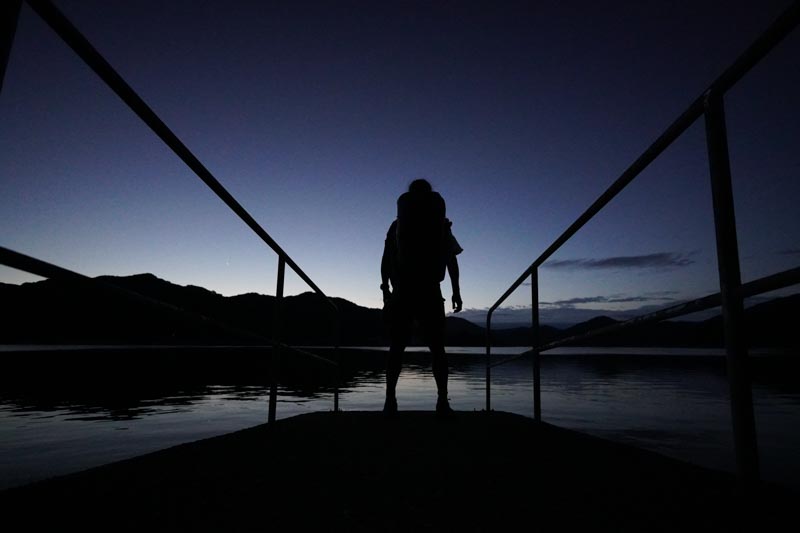 基本的には湖のような海沿いを歩いていくことになる。時々トイレはある。