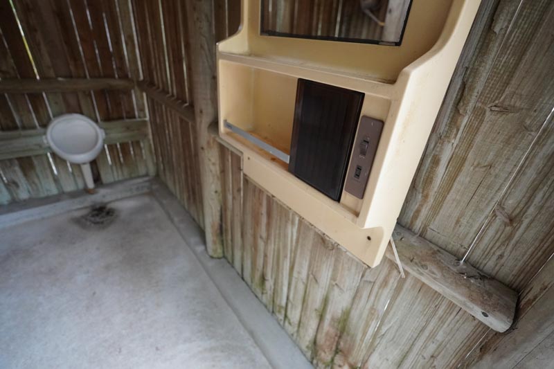 降ったり止んだりしながら少し日の光が見えてきたころにとてもきれいなお手洗いが現れた。水道もある。これは助かる。