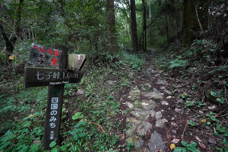 この時点で35km歩いたので、ちょっと早いが今日はどこまで行くか考えた。足と時間はたっぷり残ってるので先へ行くとして、まずルートが複数ある。北側から七子峠へ行く「そえみみず遍路道」か、南側から七子峠へ行く「大阪遍路道」。どっちでもよかったけど、スーパーに立ち寄ってたら大阪遍路道にアクセスしやすかったのでそっちを選んだ。
