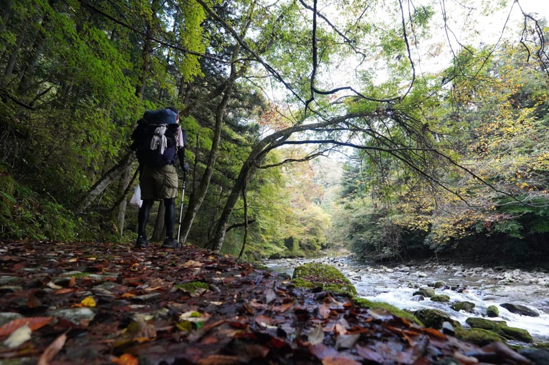 岩屋寺を出たら道路ではなくて川沿いのトレイルを歩いた。結構いい道。