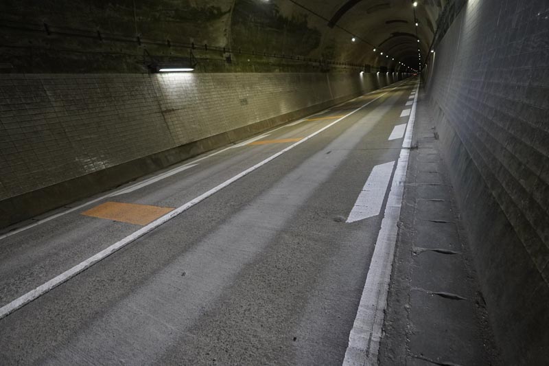 この峠御堂トンネルで事故も起きてるほど危険なトンネル。歩道もこのありさまなのでちょっと車に引っかかったりでもしたら持っていかれるのでマジで注意。車の方はここに人が歩いているとは思ってないのでかなり近づいてから驚いたようにハンドルを切る人が多かった。