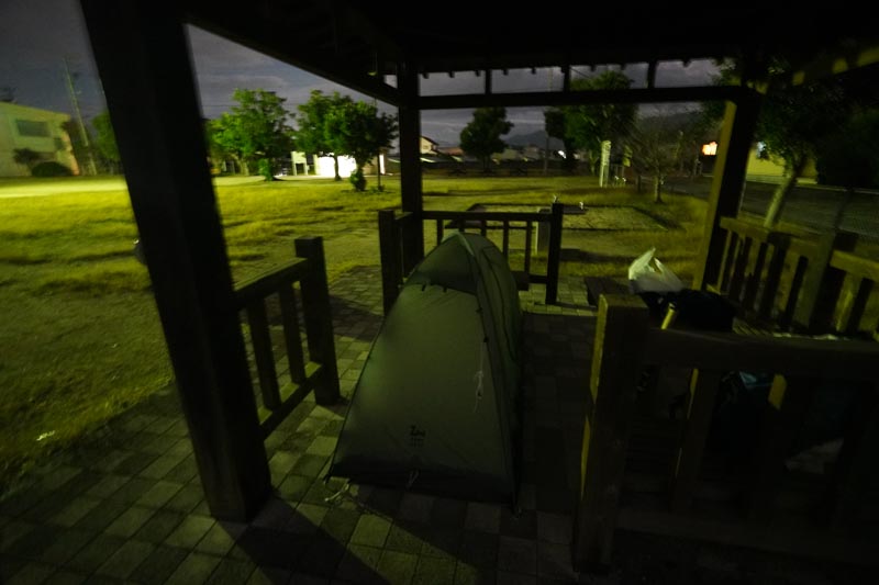 この日も特にネタもなく単調に街中を歩いた一日となった。今夜の候補地は、東予運動公園、光明寺(通夜堂)、丹原中央公園があるが、昨晩青木地蔵で知り合った方が光明寺がいいのではないかということで行ってみることにした。
