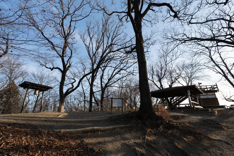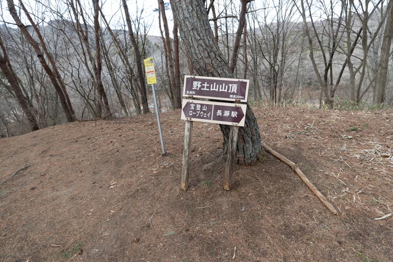 野土山は駐車場の横にあるけどどこから上るのか分からなかった。結論から言えば北口と南口の2つくらいは入り口があるようだった。北口が一番近いけど、入口探していたら南口を見つけたのでそこから入った。