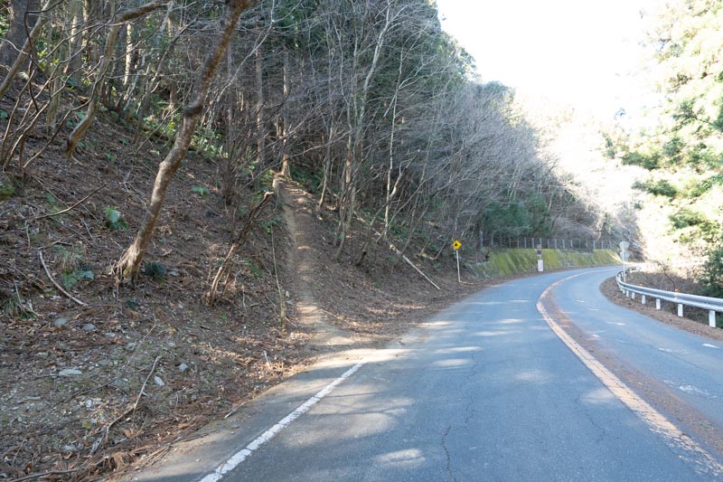 道路に出たりするので間違えないように。ここはすぐ正面の山道を突っ込んでいく。標識在るので見逃さなければ大丈夫。