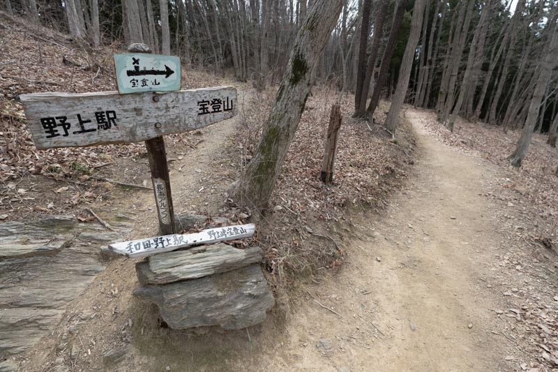 本ルートに合流。画像左側にある道を奥から手前側に歩いてきたところ。ここから右側のルートで宝登山へ向かいます。