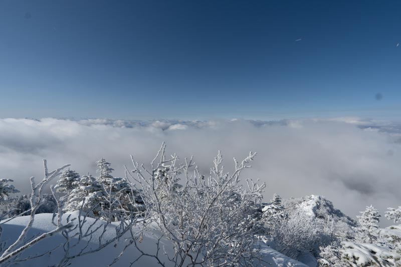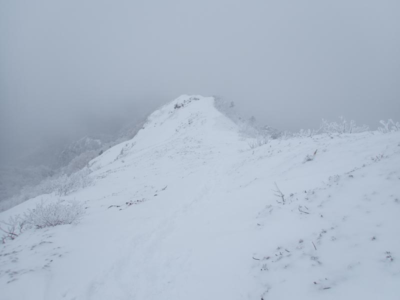 さ、行くか。少し進んだところで足跡を作ってくれた方とすれ違う。やっぱきつかったそうだ。感謝。