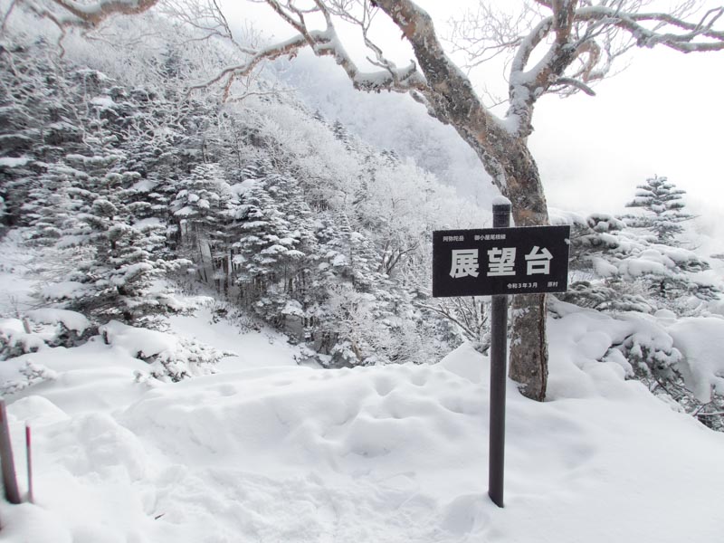 展望台に到着。ここでピッケルに交換しながら、何か展望だよと思いながら空を見上げた。