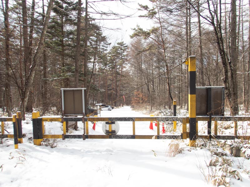今日は最初からアイゼン履いて出発(履き替えが面倒という理由)。登山口のゲートを通って10mくらい進むと重要な分岐がある。張り切っていたせいか早々に通り過ぎそうになったが、登山道の雪が急にふかふかになったのですぐに軌道修正できた。